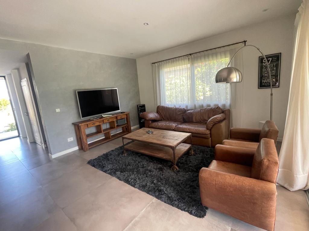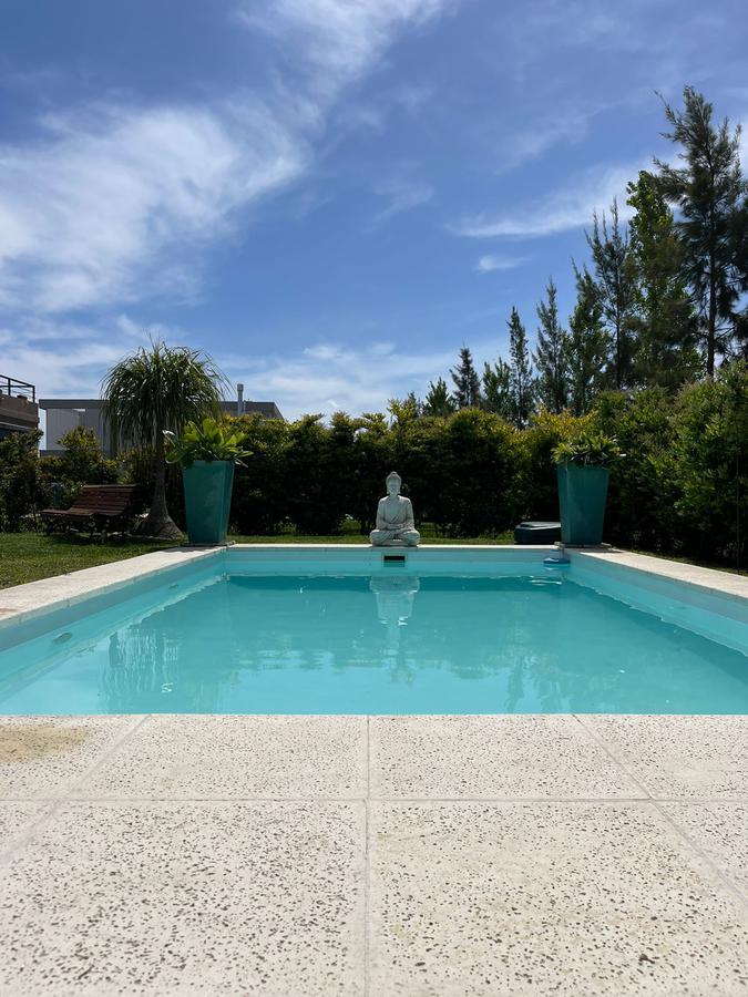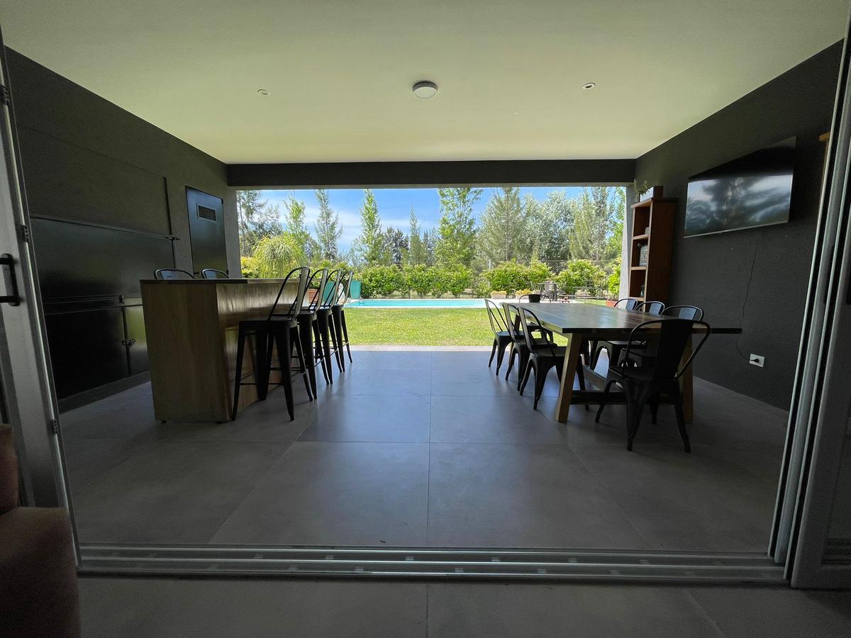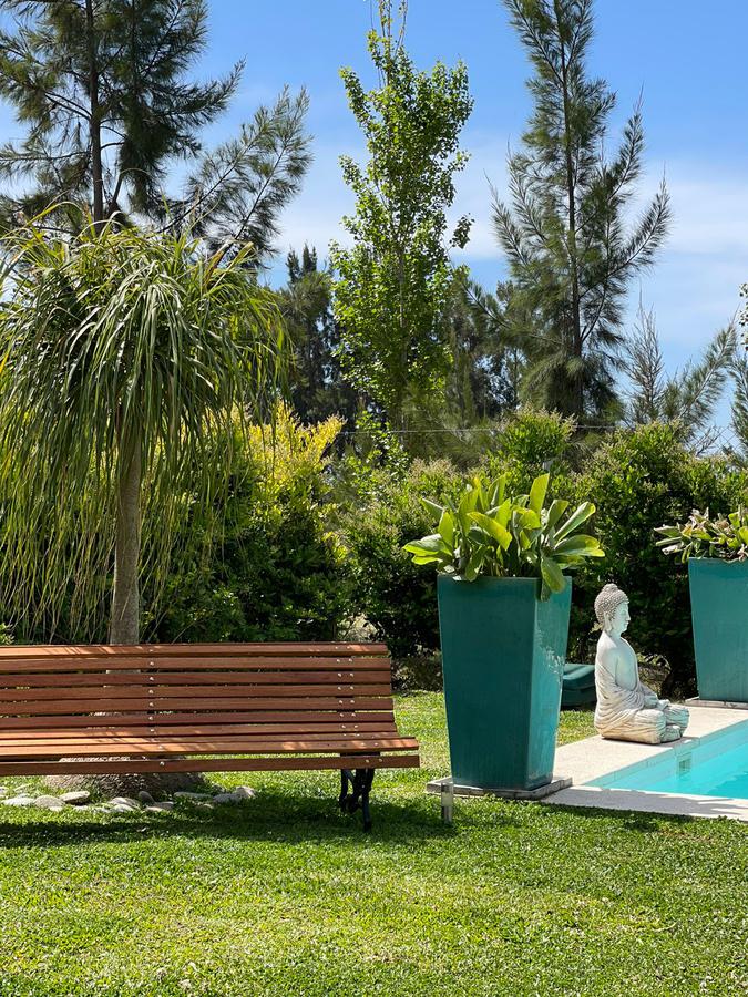 Galería techada con parrilla, piscina con solárium, hermoso jardín totalmente parquizado.