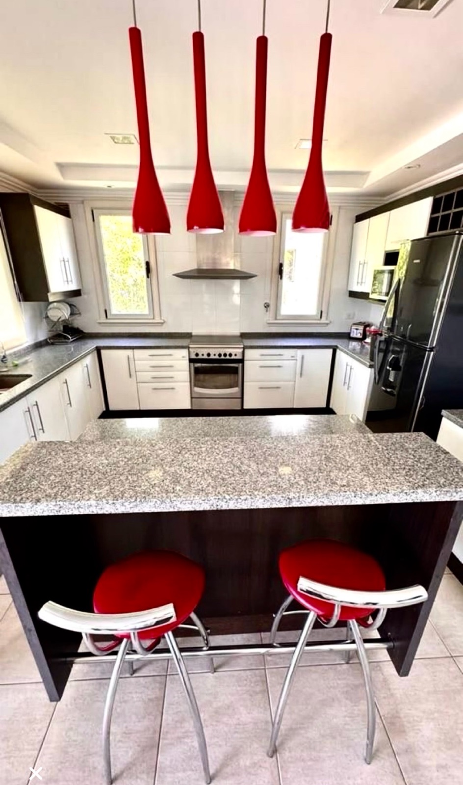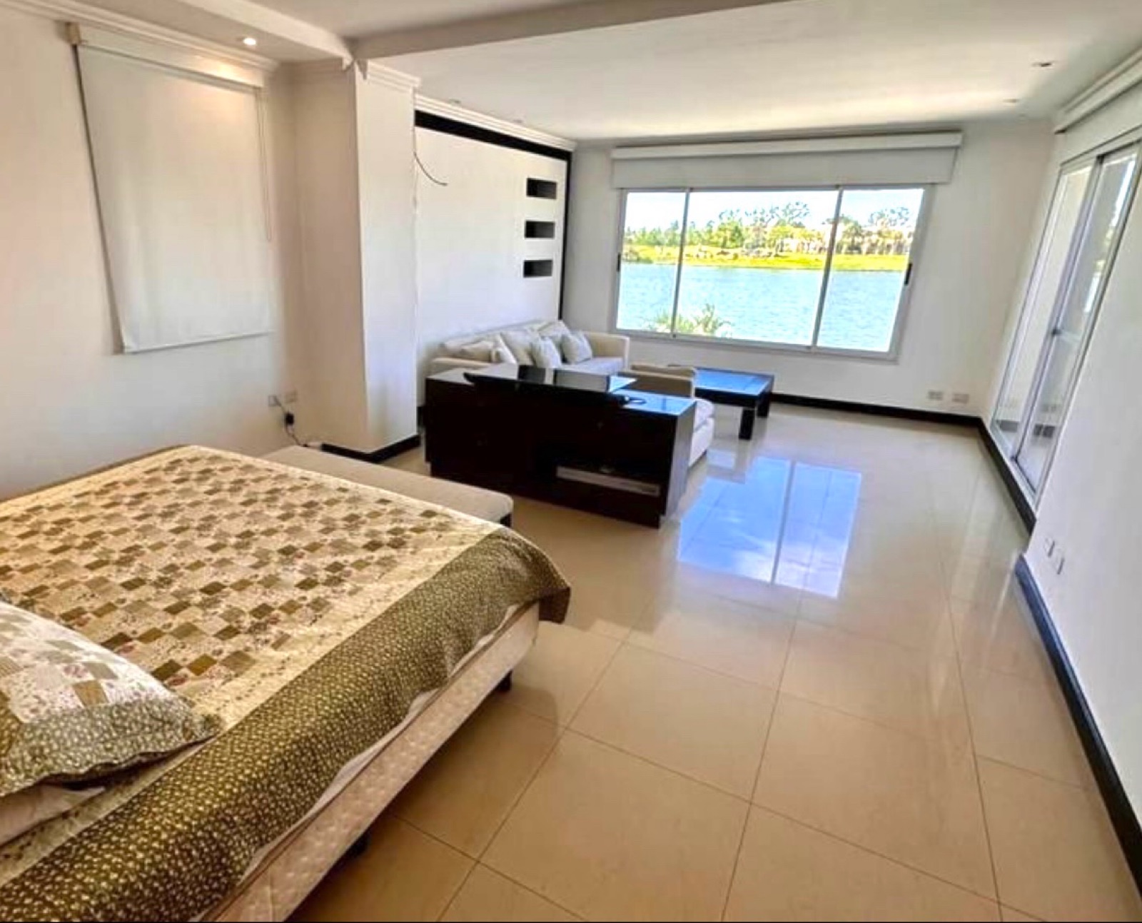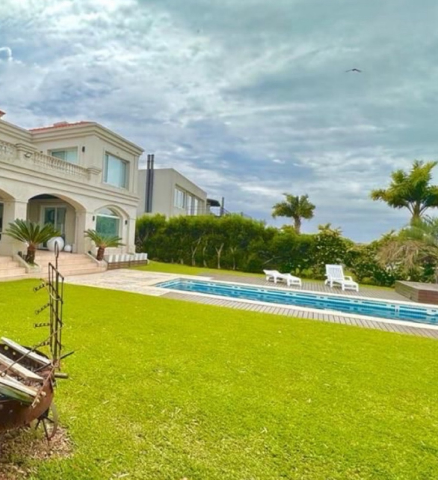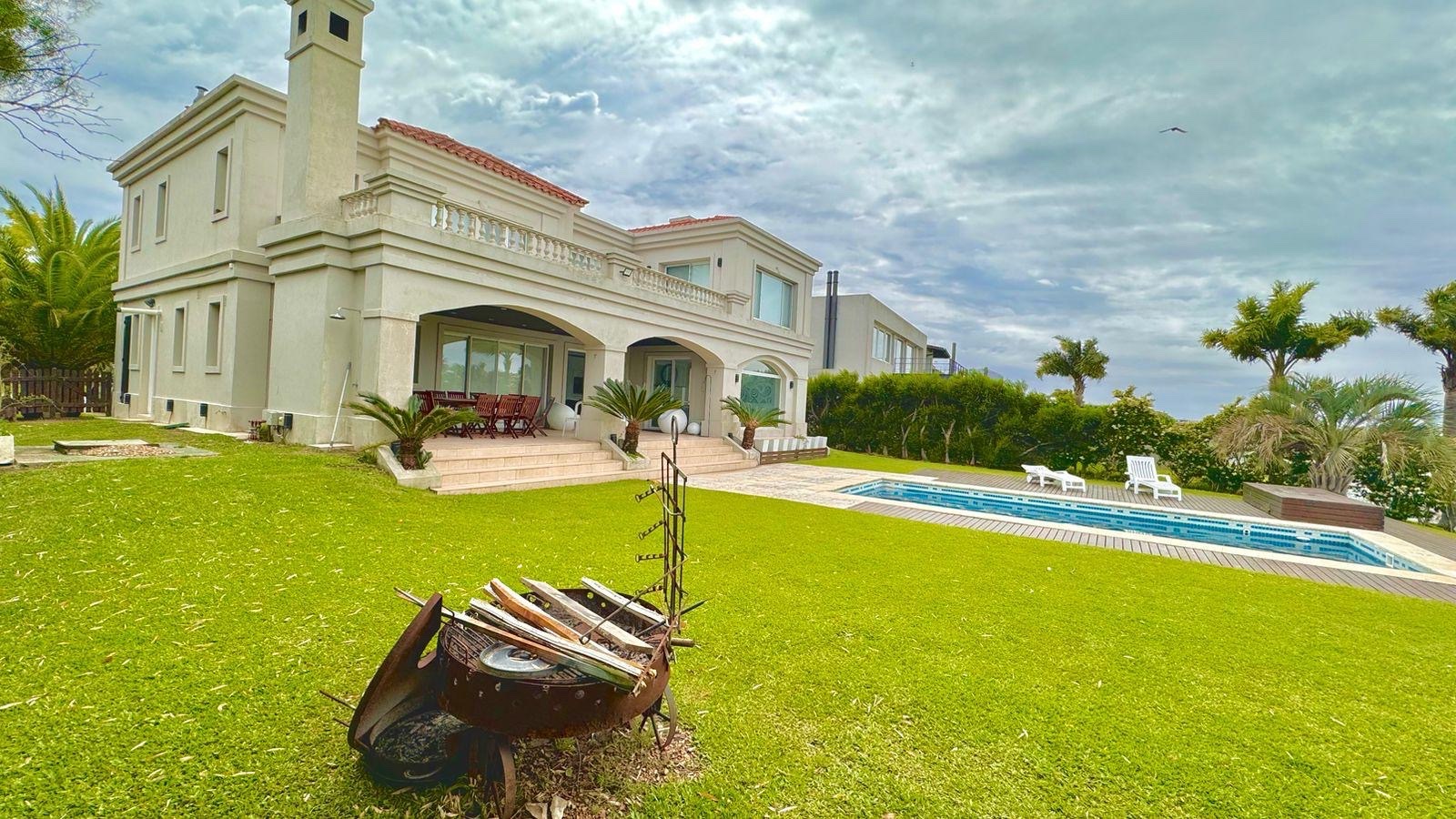 ingresando living y comedor, toil, escritorio o quinto dormitorio, cocina comedor diario, dep de servicio , sector de planchado, lavadero; en la primer planta 4 dormitorios con balcones aterrazados, 2 dorm en suite y 2 en semisuite; y en la segunda okanta un playroom; calefaccion central por losa ; aire acondicionados en todos los ambientes ; galeria , parrilla , piscina y muelle al lago !!! totalmnete parquizado exquisitamente, riego por aspersion , pasarella de madera que perimetra la costa al agua, bajada nautica . impecable estado consultanos en alquiler amoblado o sin amoblar !!!